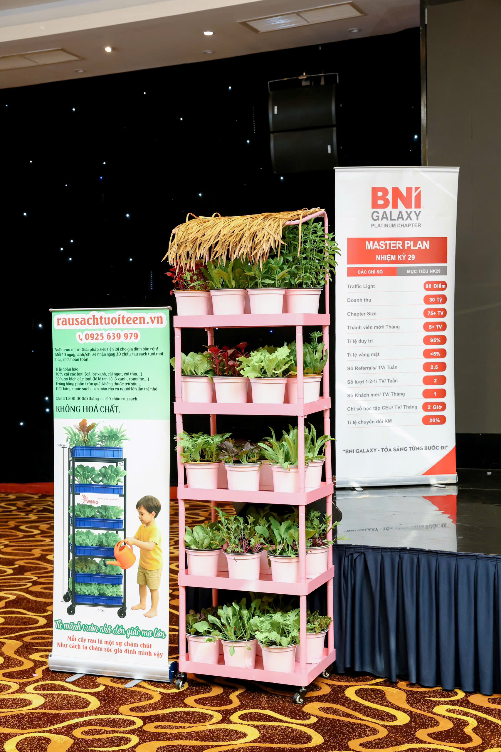 Chúng tôi sẽ cung ứng từ 72 – 120 chậu rau trưởng thành hàng tháng với hơn 60 loại rau khác nhau được đặt vào trong một khung kệ chỉ chiếm diện tích 1m2, rau được trồng tại farm hoàn toàn hữu cơ và được thay đổi mỗi 10 ngày trong tháng.